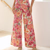 Deze wijde pantalon met bloemenprint is een perfecte mix van comfort en zomerse flair. Het luchtige ontwerp en de soepele stof zorgen voor een ontspannen silhouet dat elegant meebeweegt met elke stap. De print bestaat uit expressieve bloemen in warme tinten zoals fuchsia, koraal, oranje en okergeel, gecombineerd met subtiele groentinten die zorgen voor balans en een natuurlijk gevoel. Deze levendige, schilderachtige print doet denken aan een bloeiende zomertuin en brengt direct vrolijkheid in elke kleding.