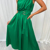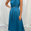 De asymmetrische snit geeft een eigentijdse en gedurfde uitstraling, terwijl de midi-lengte zorgt voor een evenwicht tussen elegantie en comfort. Combineer deze jurk met subtiele toebehoren voor een ingetogen stijl of met opvallende accenten voor een krachtige uitstraling.