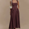 Deze midi-jurk straalt een tijdloze elegantie uit, gecombineerd met moderne verfijning. Het ontwerp is minimalistisch maar krachtig, perfect voor wie houdt van subtiele en een flatterend silhouet. De vierkante halslijn creëert een stijlvolle, geometrische uitstraling die het sleutelbeen prachtig accentueert en een gevoel van openheid en balans toevoegt aan de bovenkant van het ontwerp. De brede schouderbanden bieden niet alleen extra ondersteuning, maar versterken ook de moderne esthetiek van deze jurk.