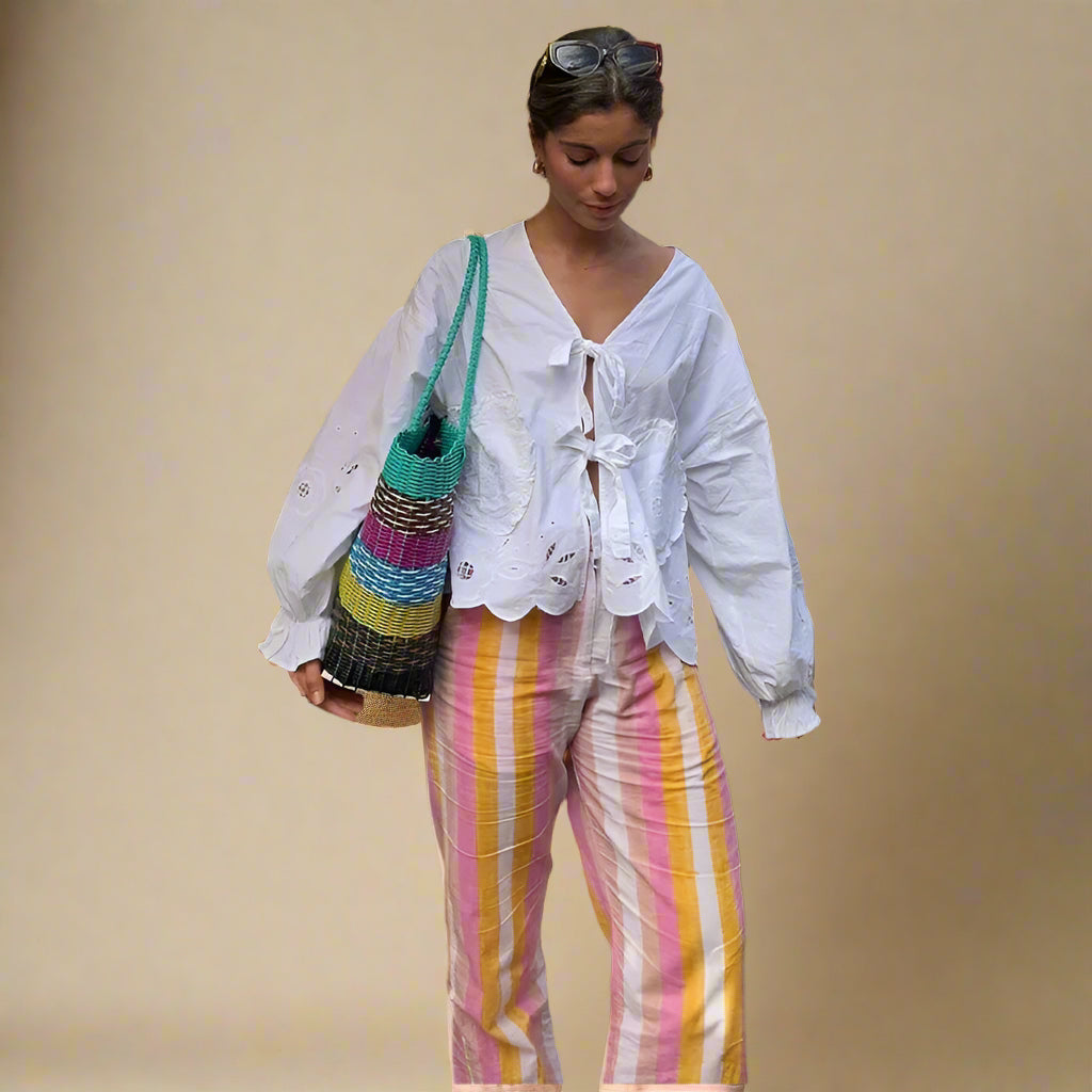 Blouse met knoopjes aan de voorkant en lange mouwen voor dames – opvallende mouwen met casual elegantie