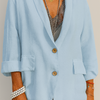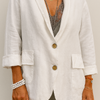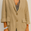 Vernieuw je garderobe met dit linnen damesjasje, ontworpen voor een verfijnde maar toch moeiteloze stijl, perfect voor diverse gelegenheden. Gemaakt van een ademende linnenmix, garandeert dit jasje lichtgewicht comfort en een natuurlijke textuur voor de hele dag. De relaxte pasvorm en V-hals creëren een flatterend, soepel silhouet, terwijl de knoopsluiting aan de voorkant en de heuplange snit structuur en veelzijdigheid toevoegen.